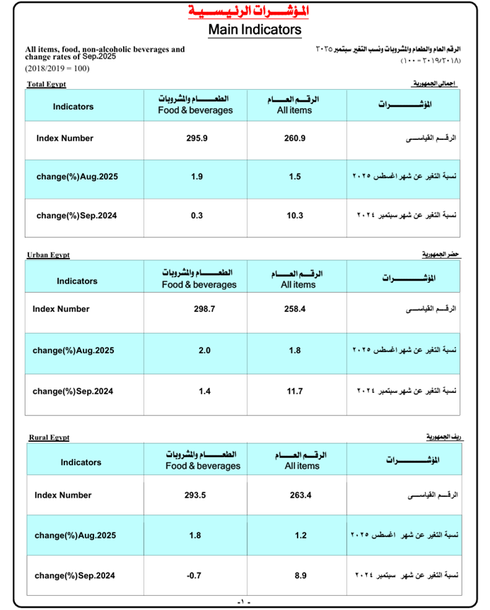 اصدر مؤخرا الجهاز المركزي للإحصاء و التعبئة نشرة الأسعار الشهرية عن شهر سبتمبر 2025 وفيه أعلن الجهاز أن أسعار الطعام والشراب ارتفعت بنسبة تقارب 12% مقارنة بنفس الشهر من العام الماضي وبنحو 2% عن أغسطس الماضي 2025 هذا الرقم وحده كاف ليدرك أي مواطن أن ما يشعر به في الأسواق لم يكن وهما وأن الغلاء الذي يلاحق لقمة العيش له جذور حقيقية في بيانات الدولة ذاتها.